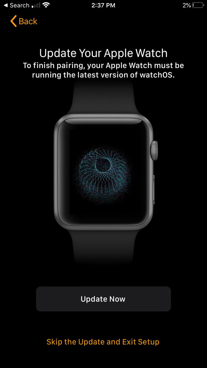 Unable To Pair Old Apple Watch Stuck At Watchos Update Already Up To Date At 3 0 R Applehelp